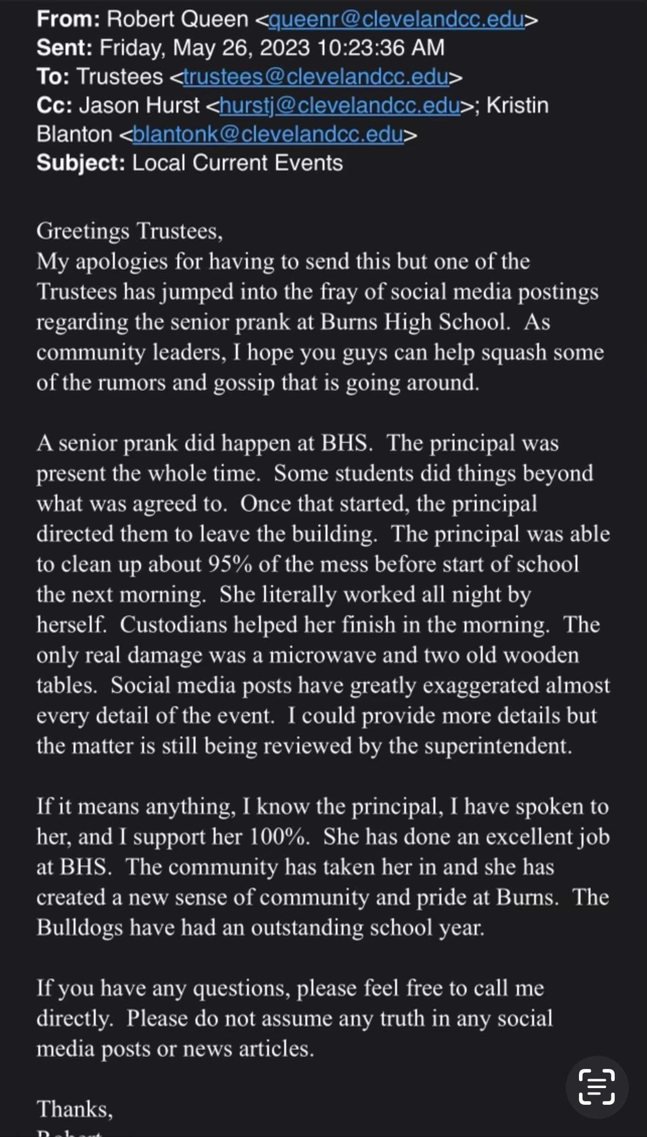 When this Moment of Silence is called, all persons in attendance who are concerned about the Educational Emergency that has been called by the NC Governor, Bullying at CCS Schools, Vandalism and the destruction of School Property recently at Burns High School and the lack of a criminal investigation and arrests, are asked to RISE during this Invocation/Moment of Silence and remain standing as you silently Pray for 45-60 seconds that the School Board will take the right and proper actions for the many issues and problems that are presently interfering with CCS providing a sound basic education for the children of Cleveland County. Also, please include in your Prayer a request to our Maker to lead, guide and direct School Board Members Ronnie Grigg, Danny Blanton and Aaron Bridges in their continued investigation of the Vandalism at Burns High School that they have already begun.